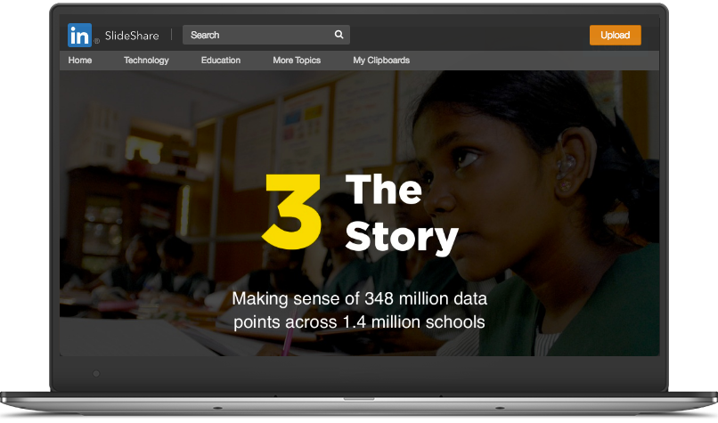 We started with data for each of India's 1.4 million schools. It covered 240 indicators like student-teacher ratio and toilet facilities.